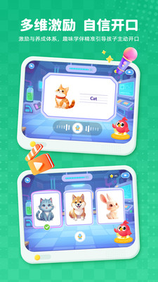 2、搭建科学的学习闭环,通过实时互动引导自信开口,搭配多维激励体系,核心词汇融入生活场景,学习效果清晰可溯。