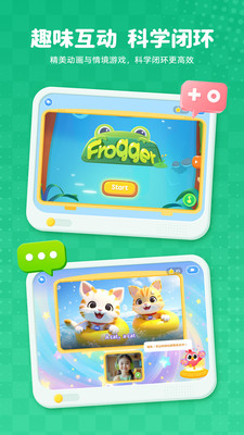 1、支持实时语音互动纠音,核心词汇结合趣味游戏巩固,英文儿歌可跟读录制,多维激励机制点燃持续学习热情。