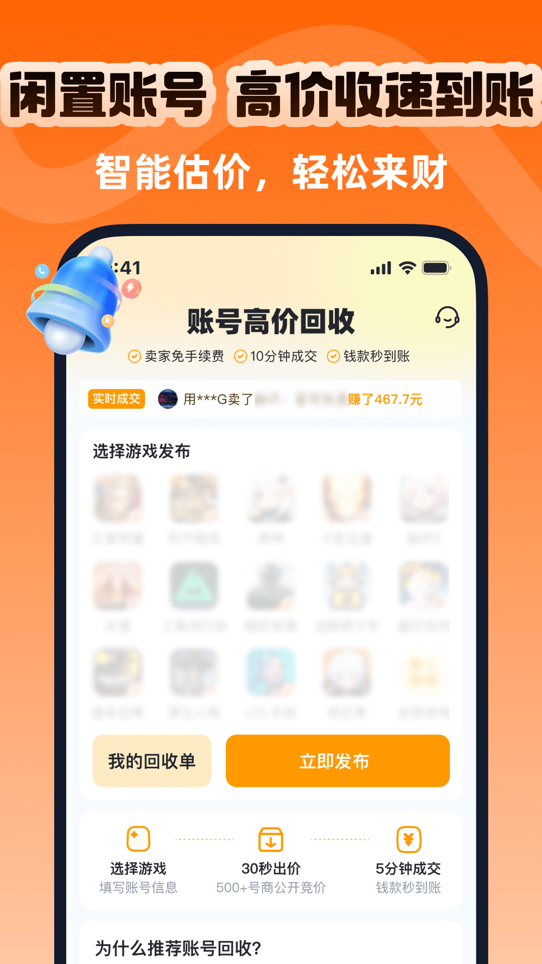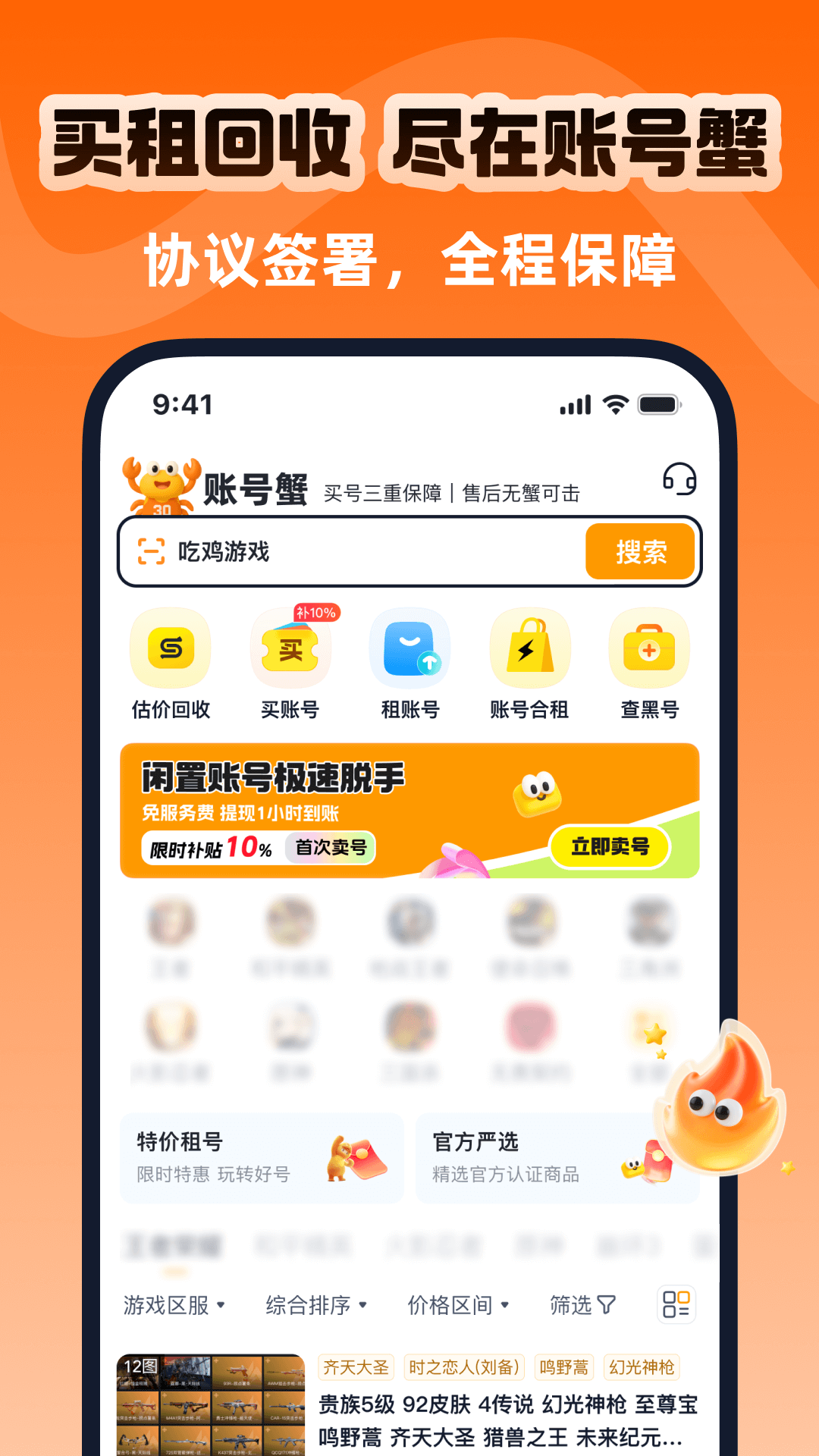 账号蟹app是一款集游戏账号交易服务平台,提供游戏账号的租号、回收功能,让你畅享全能型省心服务平台,以一站式满足玩家全方位账号需求为核心,巧妙融合了安全交易、智能搜索、真人验证及灵活租期等多元化服务,为游戏爱好者打造了一个既便捷又安心的账号管理天堂,能精准对接你的需求,让每一次账号交易与租用都成为一次省心又愉快的体验之旅。