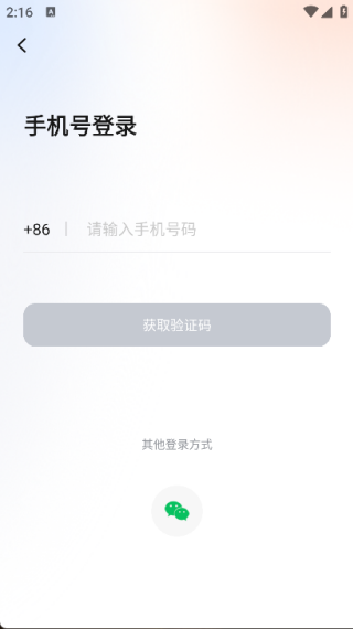 3、输入手机号,获取验证码,即可快速登录,进入主页面。