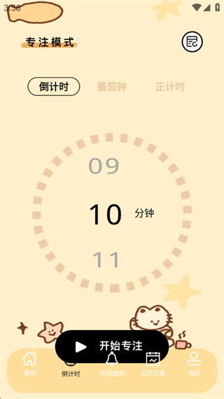 2、提供专注倒计时、番茄钟、正计时功能,让大家保持专注;