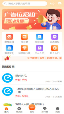 4、热门地推项目榜单与限时特惠专区,热门项目一目了然,让你第一时间掌握市场动态,不错过任何一个潜在的高收益机会。