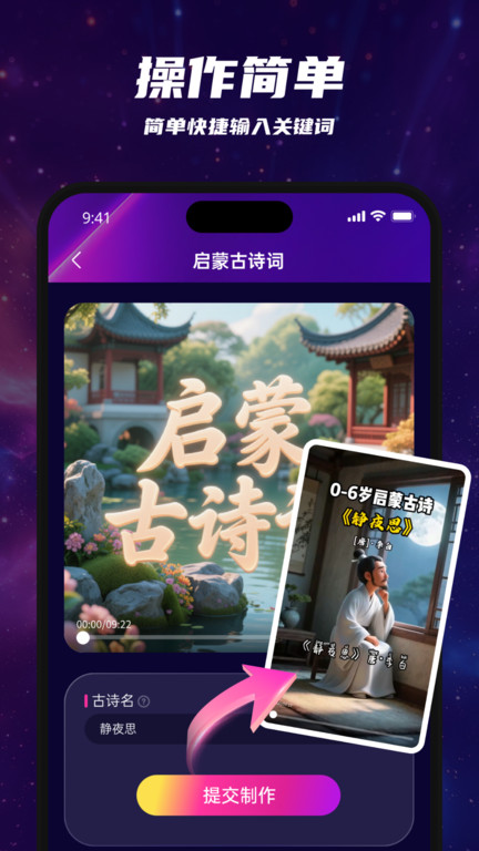 沸推手机版是一款非常强大的视频生成软件,专为各类用户提供简便高效的视频制作工具,帮助用户轻松实现创意表达,无需复杂的操作就能制作出令人惊艳的视频作品。不同类型的视频模板和素材库确保用户能够轻松应对各种创作场景,从简单的介绍视频到复杂的叙事作品,这里都能找到合适的资源和工具。借助丰富的素材库、智能化的操作功能以及便捷的实时分享渠道,用户的创意将得到最大程度的释放与展现。