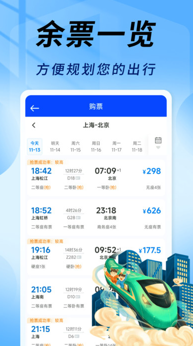 2、精准捕捉余票增减、车次变动、席别状态等关键信息,能确保数据与官方系统高度同步。