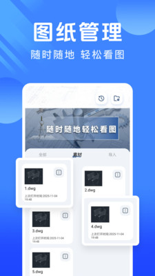 2、支持多渠道图纸导入,兼容本地文件、微信传输等方式,DWG、DXF等格式直接打开,无需额外转换步骤。