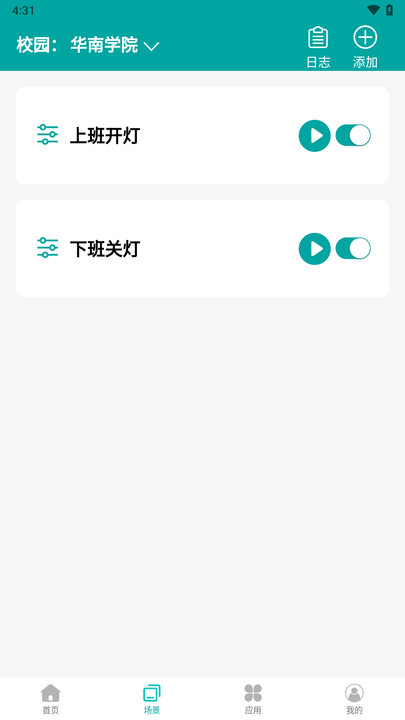 1、通过APP对校园内的智能硬件设备进行控制,例如照明系统、空调、电子屏幕等。
