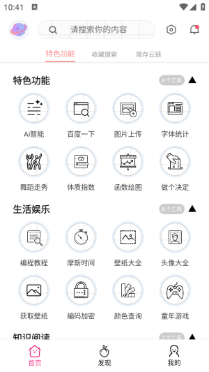 3、首页就可以看到各种的特色工具,划分非常详细;