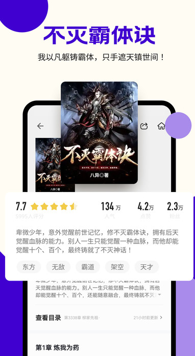 3、让阅读回归本质,用免费优质的内容与便捷的体验,助力用户养成阅读习惯。