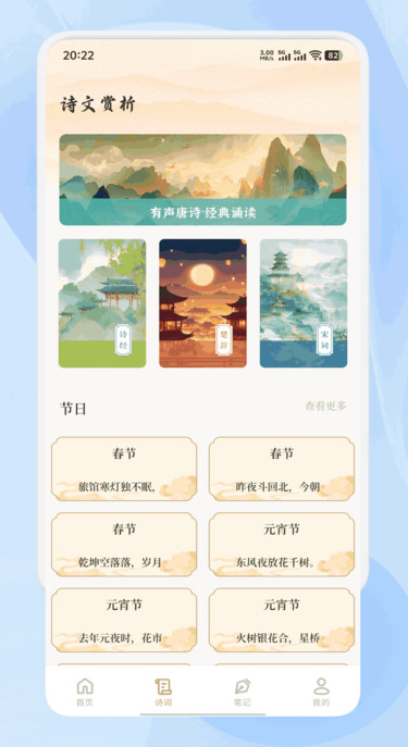 3、部分经典诗词搭配名家吟诵音频,通过声调起伏传递情感节奏。