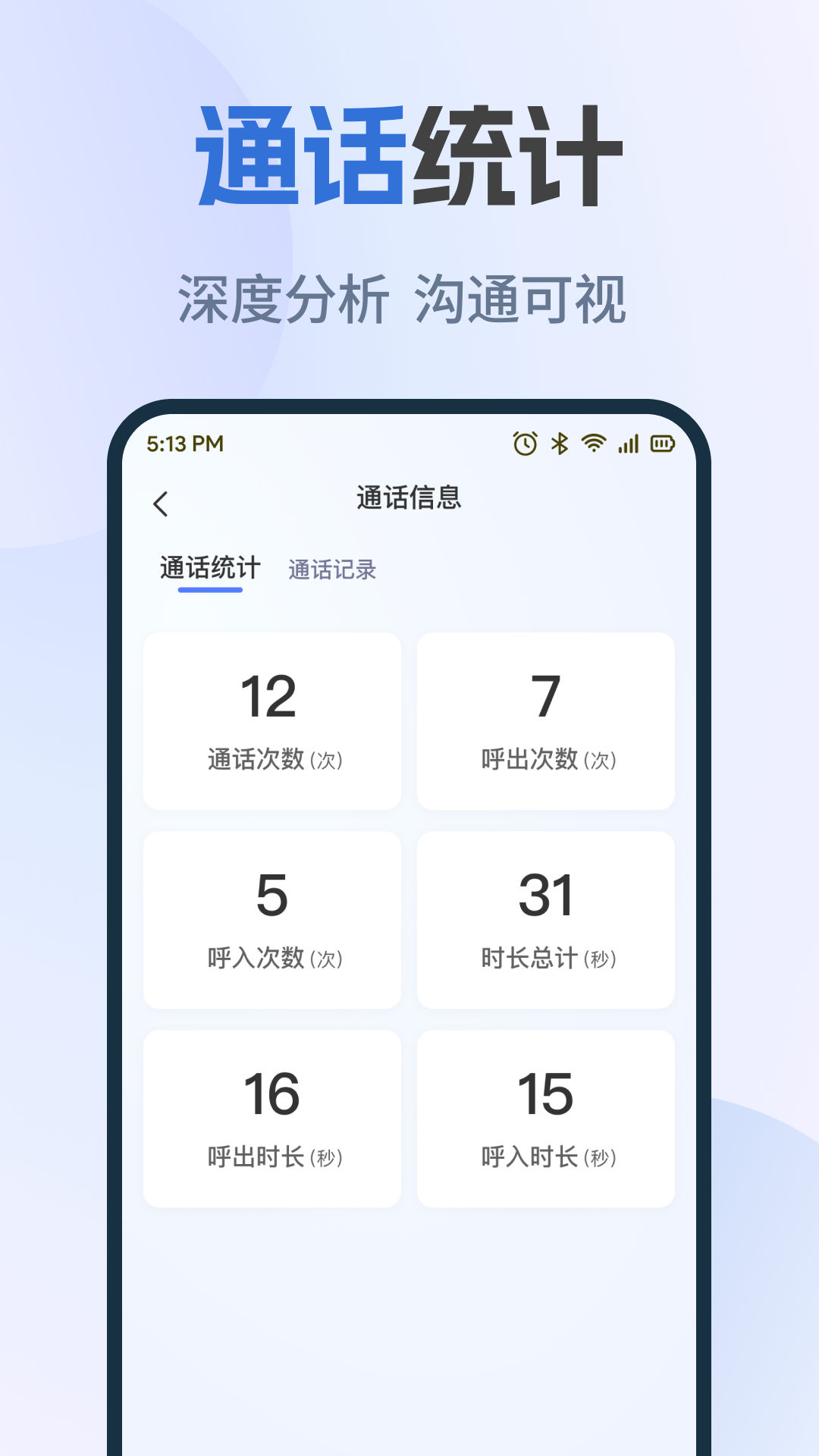 3、自动汇总单人累计通话、日均次数与平均时长,生成折线图表,帮助用户量化沟通频率,合理控制话费。