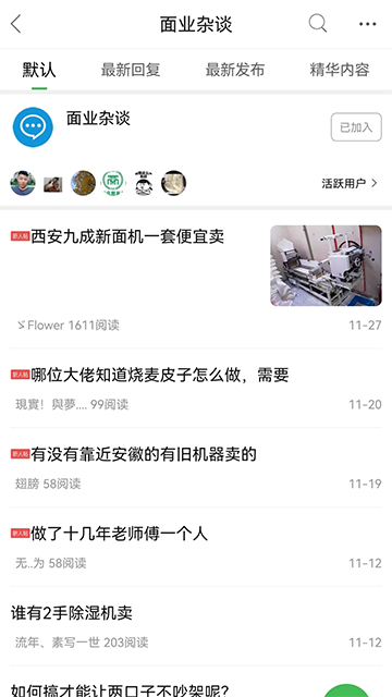 3、在首页点击面业杂谈,可以查看行业资讯。
