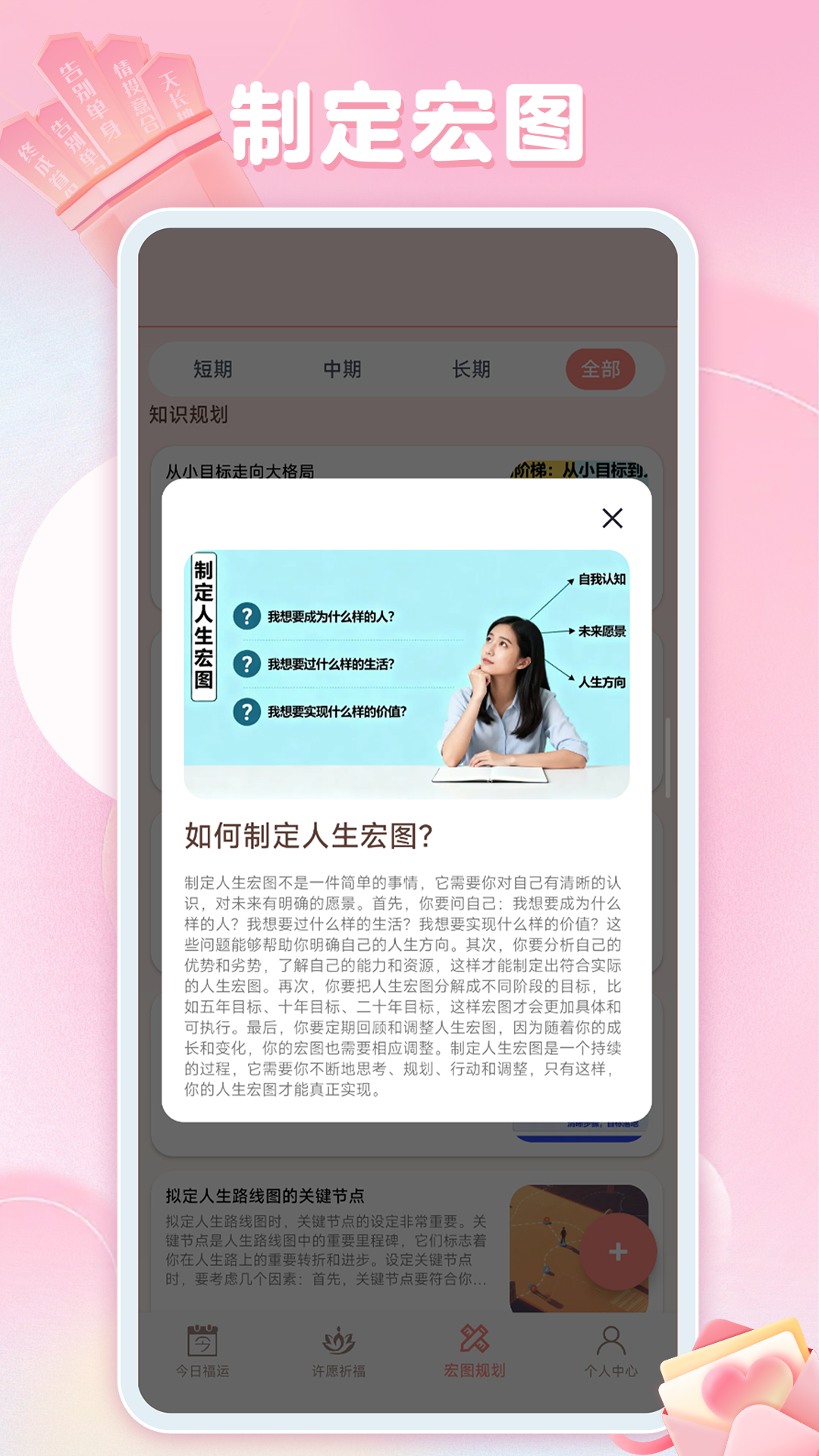 4、借助宏图规划工具,根据自身实际情况,制定短期到长期的个人计划,都能有条不紊地推进,让成长之路更加清晰明了。