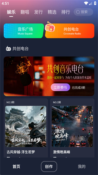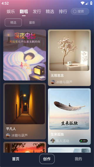2、支持翻唱音乐,还可以发行作品;