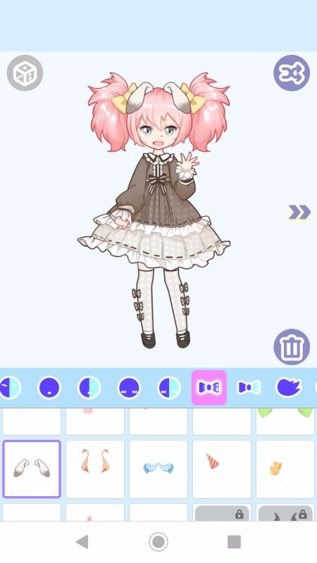 2、单指点击拖拽即可完成换装,支持随机搭配功能一键生成惊喜造型,创作完成后可直接导出为头像、壁纸,适配社交平台与手机桌面。