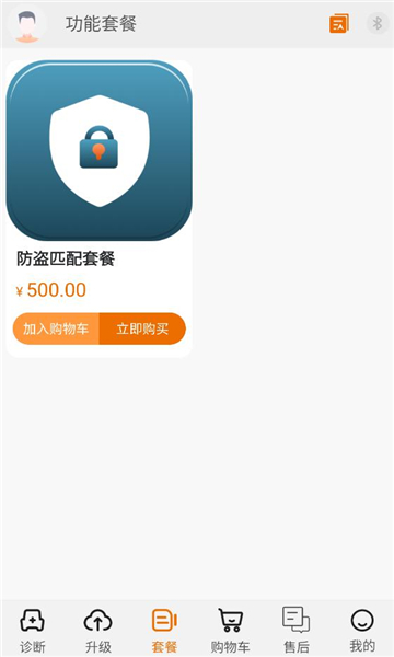 2、可以通过APP直接进入套餐中心,购买诊断仪所需的配件或耗材,并享受优惠价格。