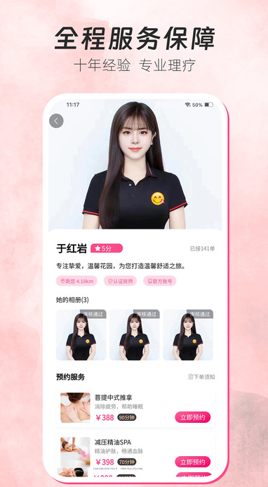 2、每位技师主页均展示完整信息,用户可直观了解其服务风格与专业水平。