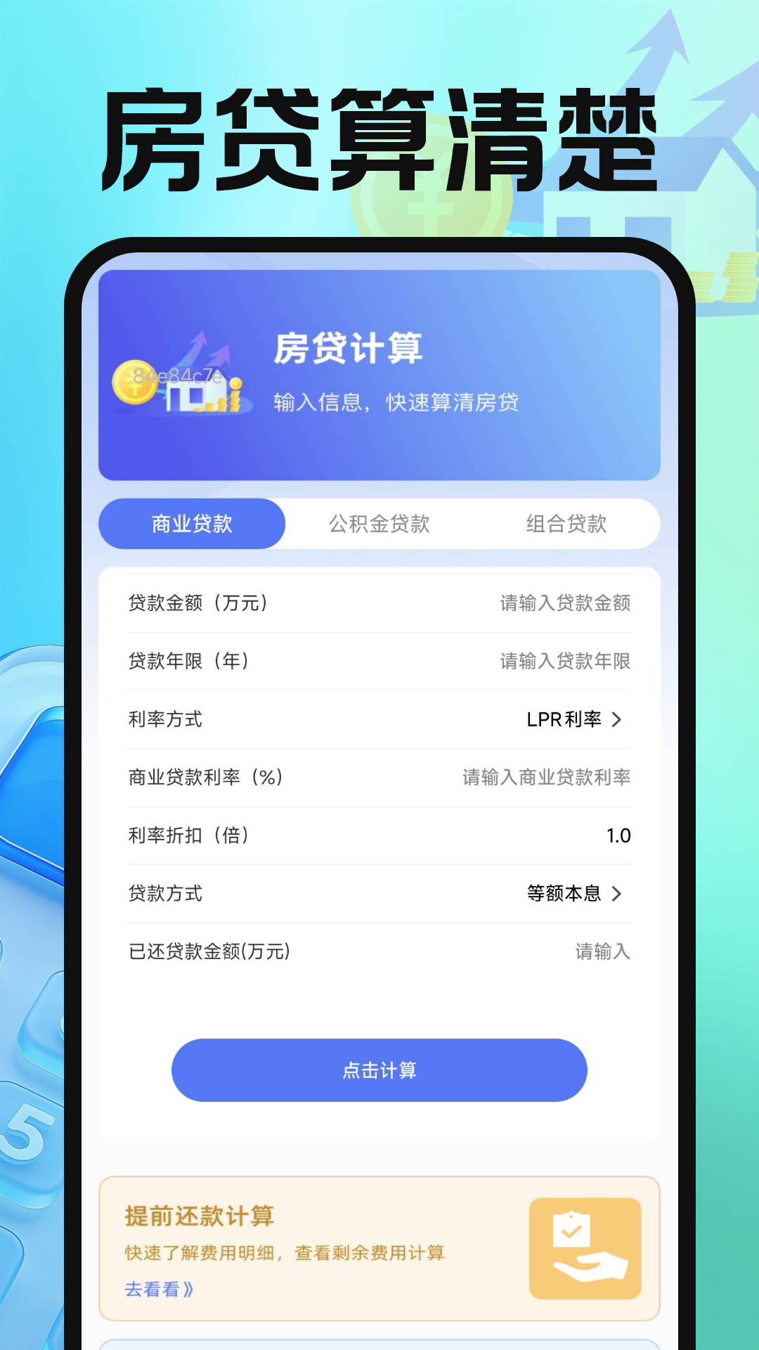 4、点击【房贷】进入,只需要输入数值即可计算各种贷款的利率。