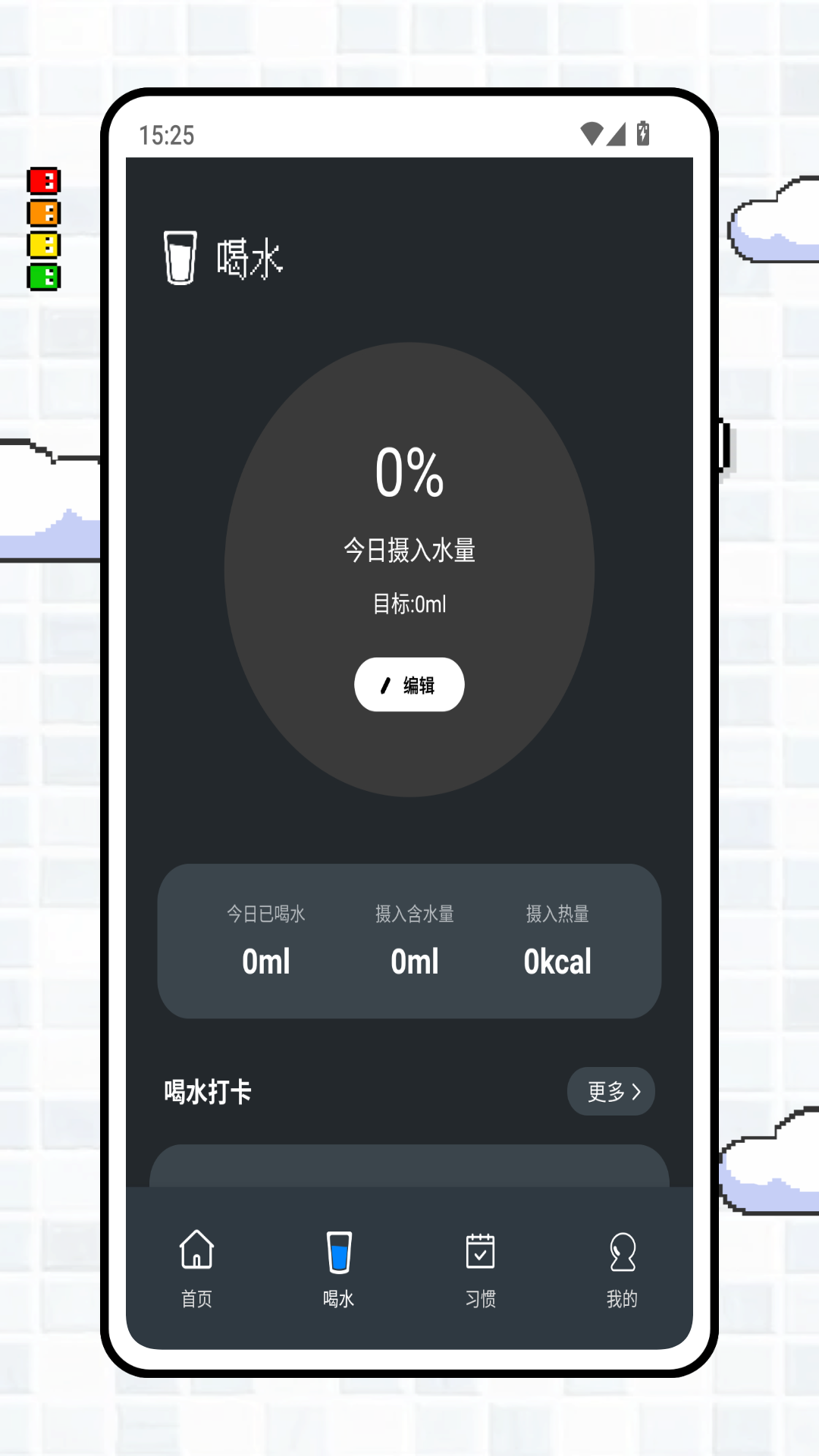 3、进入到【喝水】,可以进行每日喝水健康打卡,生活更健康。