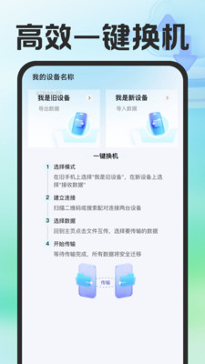 1、能够一键换机,或进行文件互传,传输记录都会保存下来;