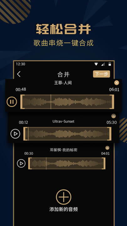 2、支持多段音频拼接合并,可以将几首歌曲连贯地组合成一个完整作品,创造独特的音频内容。