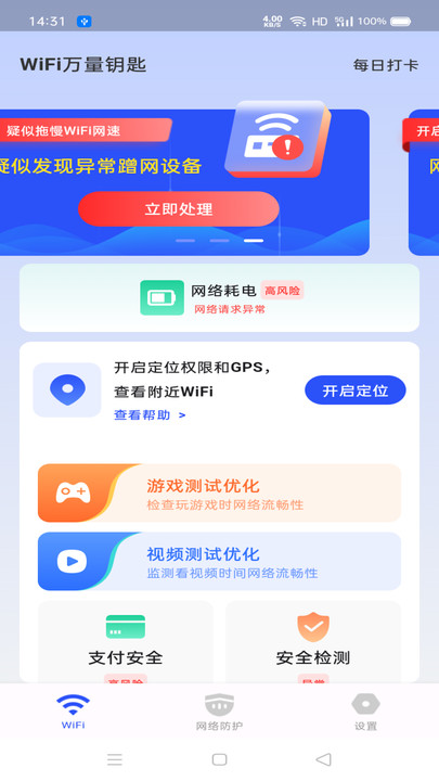 3、深度扫描连接网络,智能识别风险热点,及时预警钓鱼WiFi,构建安全上网环境。