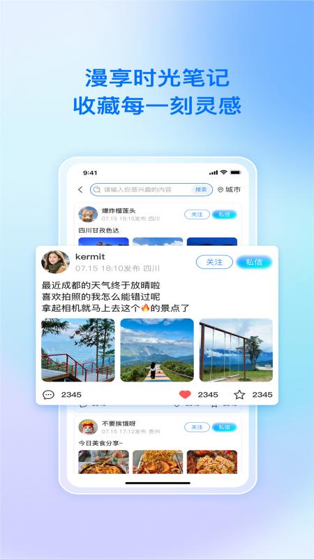 2、打开app轻松上传旅途中的照片与游记,将每一刻的美好瞬间永久珍藏,随时回味。