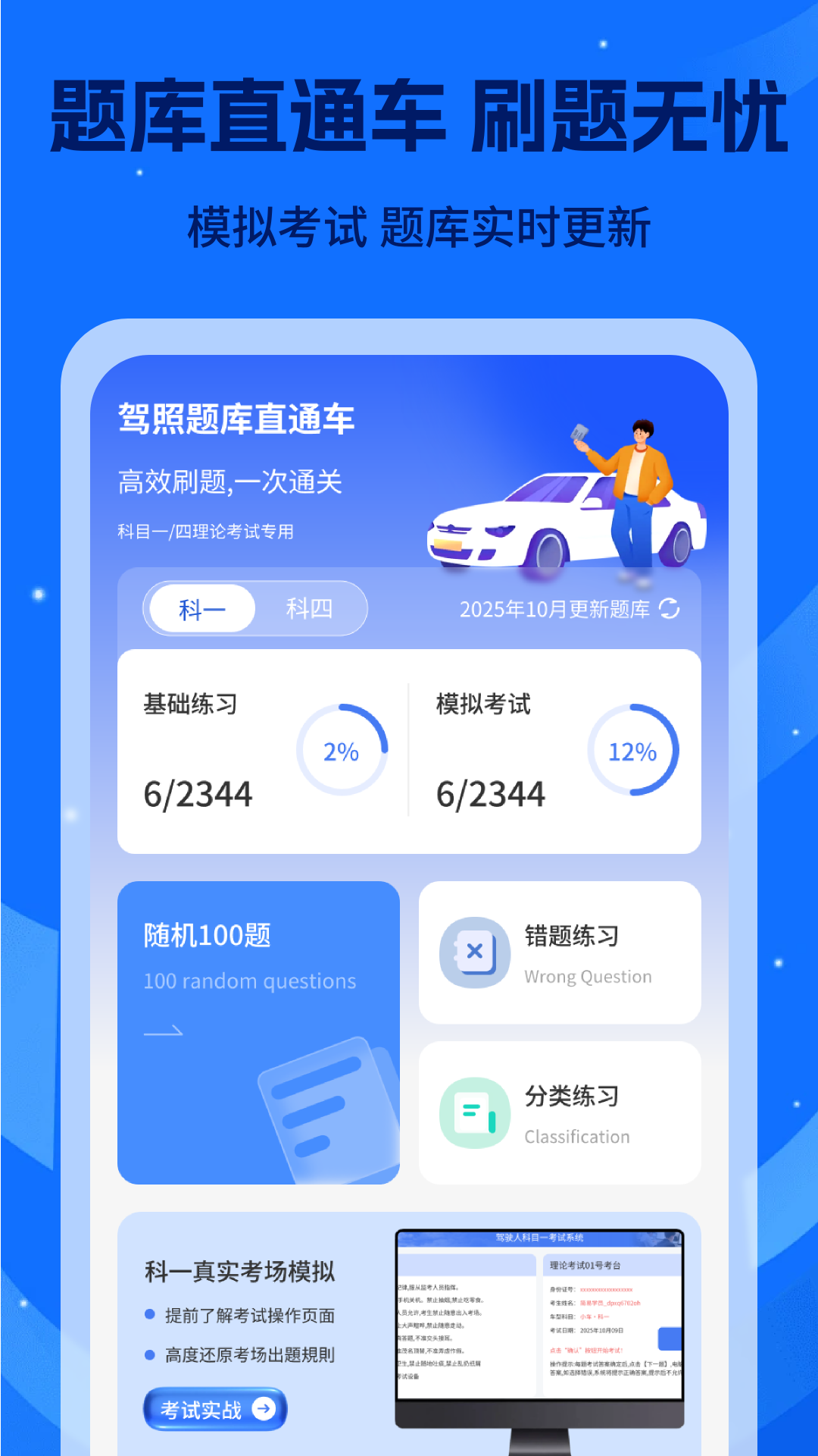 1、通过系统的练习和真实的模拟,帮助学员充分备考,大幅提高科目一和科目四的考试合格率。
