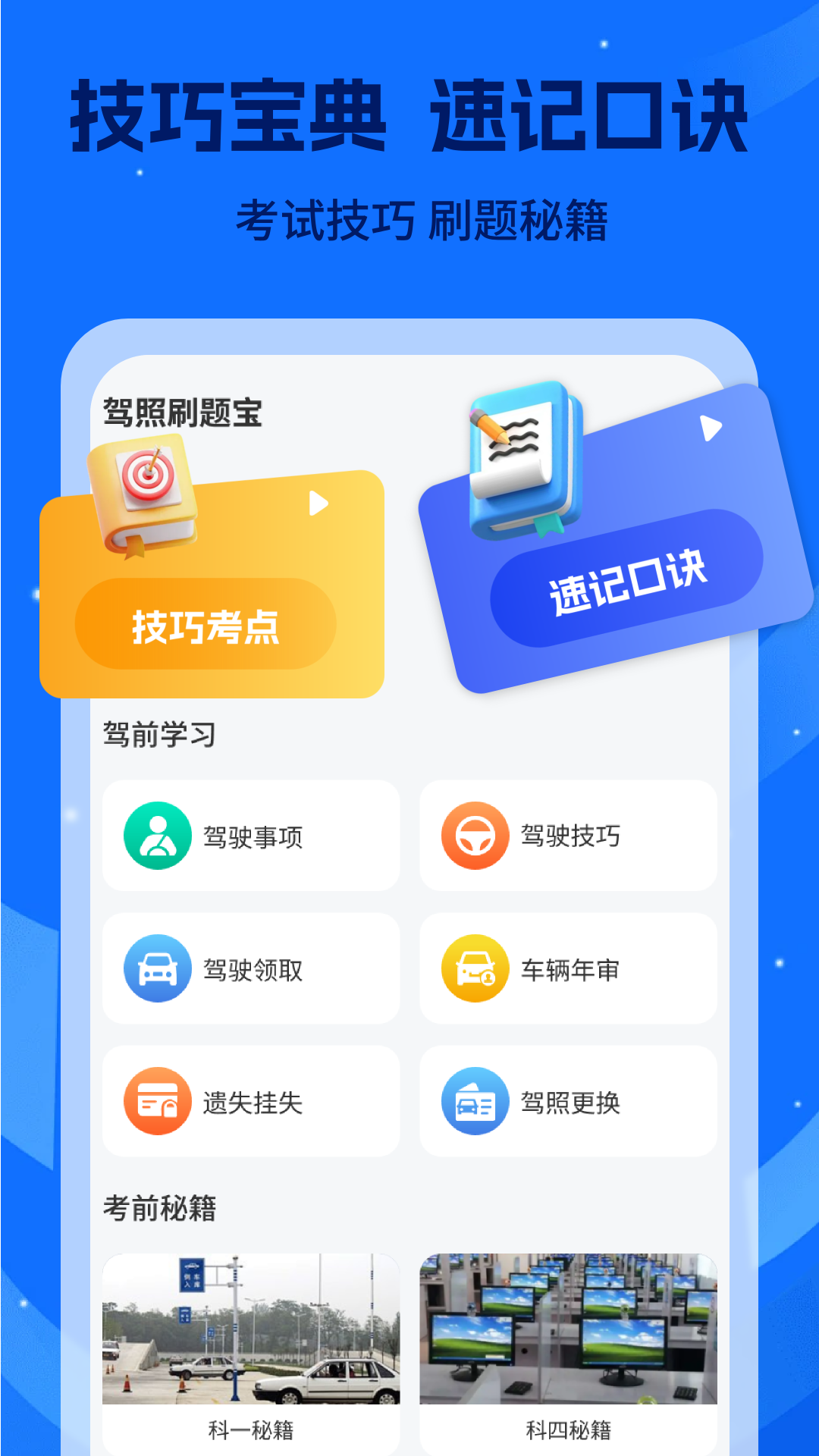 驾照题库直通车app下载是一款专注于驾考理论考试的备考应用,旨在帮助学员高效备考科目一和科目四,顺利通过驾照理论考试。应用整合了权威的题库资源和实用的学习功能,真实还原考场考试界面与流程,提供沉浸式的模拟考试体验。除了全真模拟考试外,还提供随机练习、题目分类、精选高频题等多种学习模式,配套详细的考试技巧和流程指南。