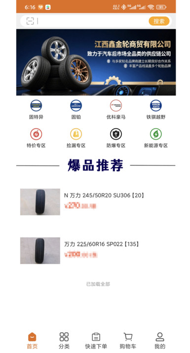 3、在首页上任你挑选轮胎,轮胎商品详情一目了然。