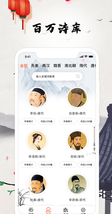 2、收录李白、杜甫、苏轼等数千位诗人的传世之作,总量超十万篇。
