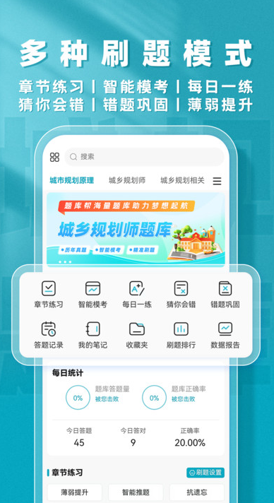 城乡规划师题库帮app是一款很给力的高效在线刷题备考软件,在这汇集了多种备考模式,如章节备考,模拟备考,错题备考等,用户可以随时进入首页在线选择合适的学习模式,让你在线备考不仅仅可以有方向,有动力,也可以轻松备考成功,不需要担忧自己盲目备考,最关键的是这里的学习资源都是免费的,可以尽情根据你的个人时间来这学习。