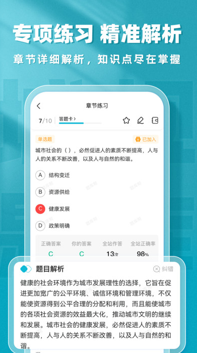 1、自动推送对应章节的专项强化练习,让复盘更具靶向性。