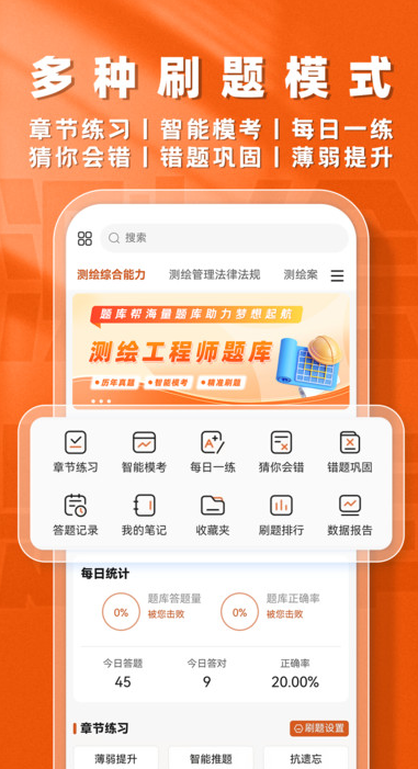 测绘工程师题库帮app是一款专为测绘工程师提供的免费在线备考学习软件,线上学习方便简单,不管你人在哪里都是可以随时来这进入题库中心,一键即可轻松答题,系统也将会随时记录你的错题和难题,你也可以快速查看解析,并且也可以来这定制你的个人学习计划,有目的性的学习更高效更及时,助你备考轻松通过考试。