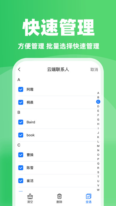 2、进入首页可以看到丰富的功能,实时进行联系人备份以及导入。