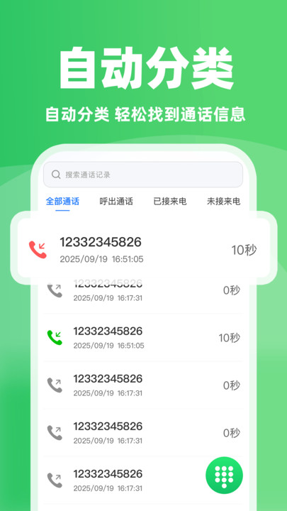 3、内置智能去重算法,合并运营商重复推送记录,确保同一通话只出现一条,杜绝视觉噪点。