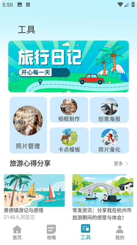2、制作专属于你的旅游攻略,同时可查看其他用户的出行游记。