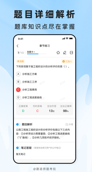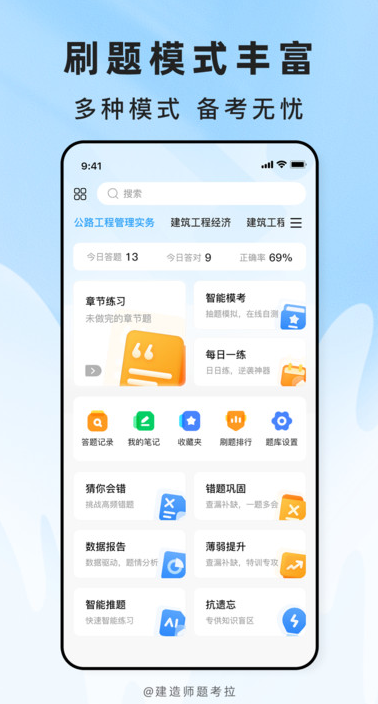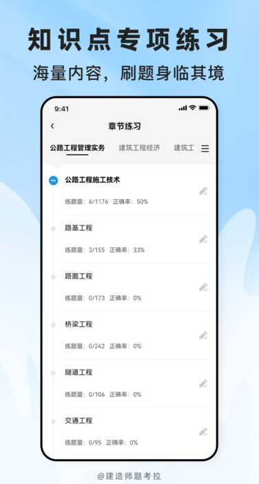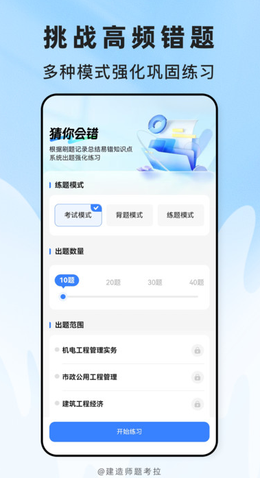 建造师题考拉app是一款帮助更多考生们轻松刷题就可以顺利通过考试的软件,这里的学习资源比较齐全,每个考生们都是可以随时根据个人的学习需求来这自由刷题,支持历年真题刷题,支持章节刷题,支持错题刷题,支持难题在线刷题等,每一次的刷题都会有意想不到的惊喜,你也可以随时来这查看你的个人学习足迹,并且也可以定制学习计划。