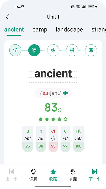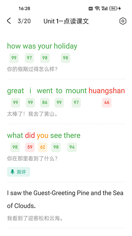 2、内置 AI 口语评测引擎,朗读即刻给出音素级分数与口型示意,逐句纠音,让学生不用外教也能练出地道语调。