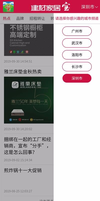 3、多城市切换功能让用户能自由选择关注区域,获取当地建材市场的专属资讯和商业信息。