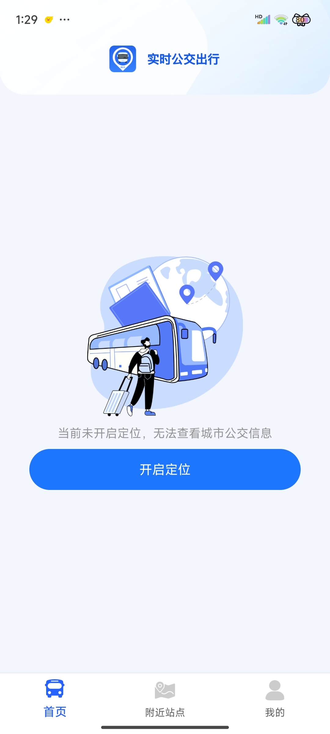 2、用户使用前可以开启位置定位,查看到周边的公交车附近站点。