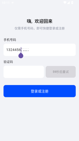 3、进入登录页面,仅支持手机号+验证码登录方式。