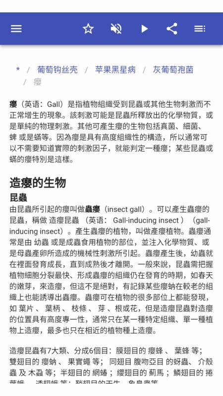 2、来到软件白粉病页面可查看病症的详细介绍,可治疗过程、参考资料等内容。