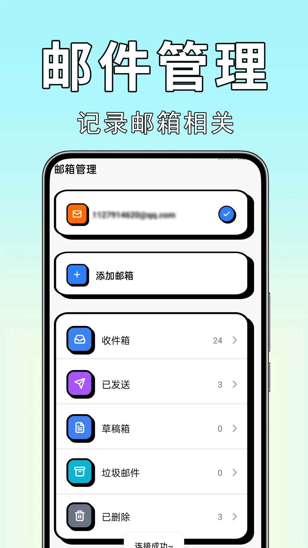 2、对邮箱可以进行统一管理,智能添加邮箱。