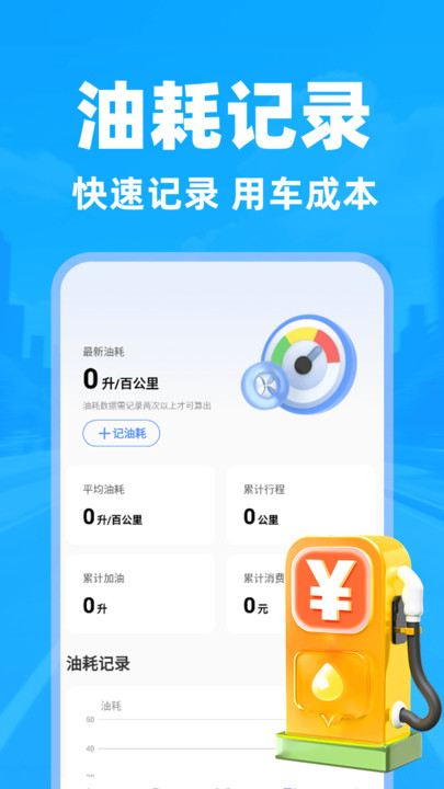 1、自动生成油耗趋势图,支持手动录入或OCR识别小票,精准计算每公里用车成本。