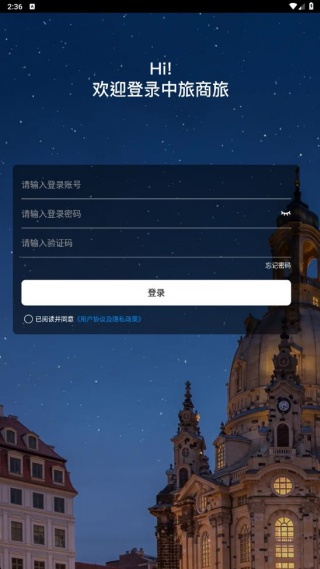 2、来到软件登录页面,输入手机号、密码、验证码点击登录即可完成。