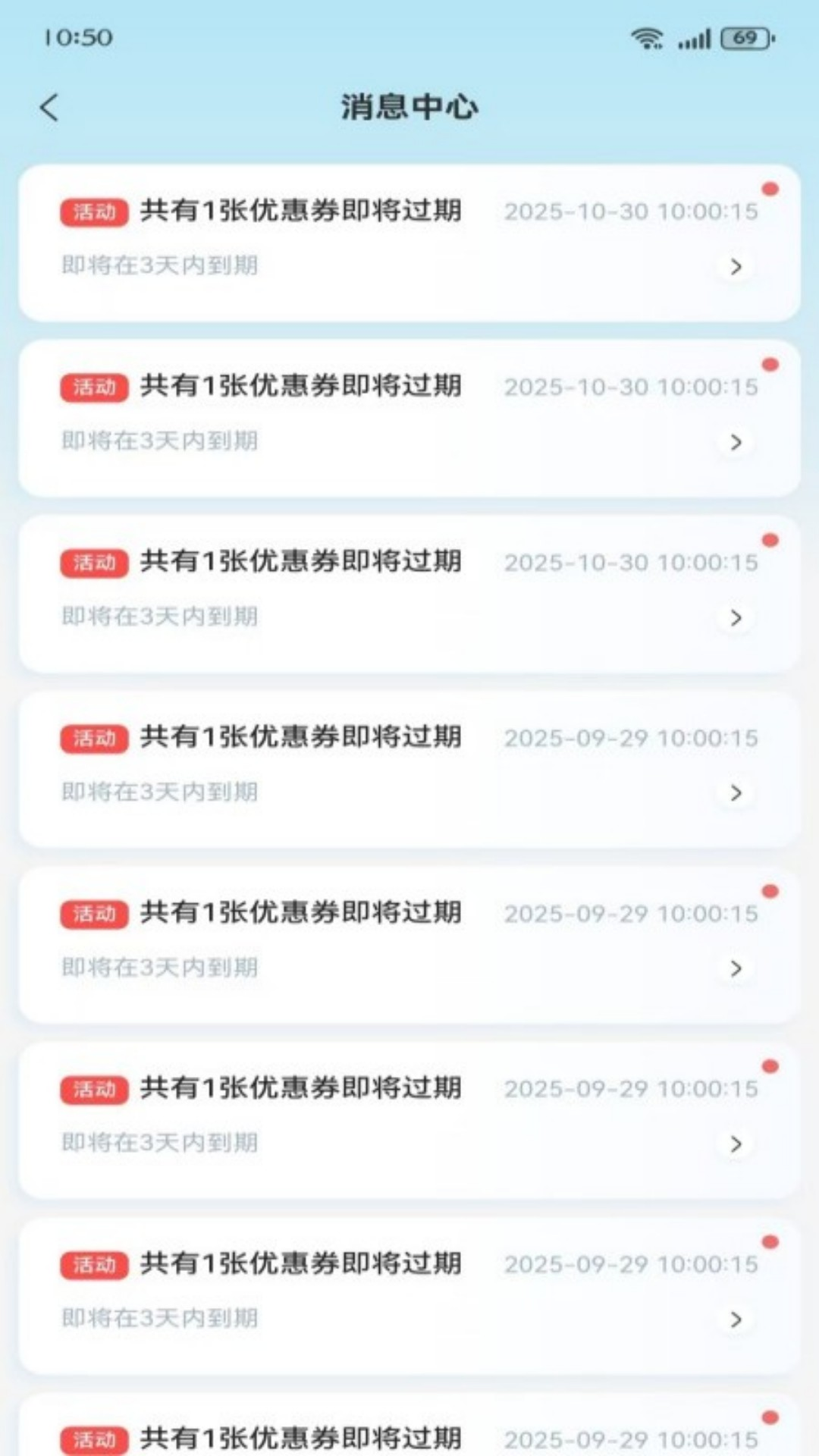 4、点击进入消息中心,可以来轻松查看到消费券最新的动态。