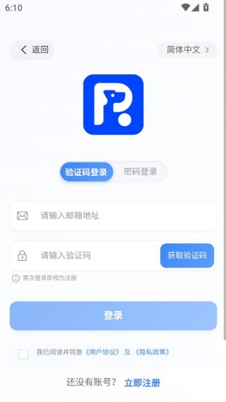 2、立即注册账号后,在这里可以选择验证码或者密码的方式登录进入平台。