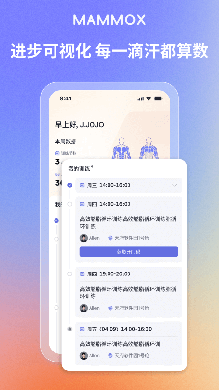 2、提供便捷的课程预约系统,与教练实现无缝沟通,确保训练计划的顺利执行与及时调整。
