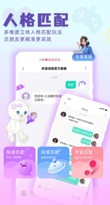 欢渝app是一款适合单身贵族的交友应用,单身的你不仅仅可以随时来这寻找解乏空闲时间的方法,同时也是可以及时来这匹配属于你的缘分,交友之前任你快速设置你的交友标签,系统将会根据你的标签快速为你匹配附近的合适的人选,用户也可以在线进行筛选匹配,在这交友不需要担忧,安全性还是比较高的,随时用你的声音去打动他人。