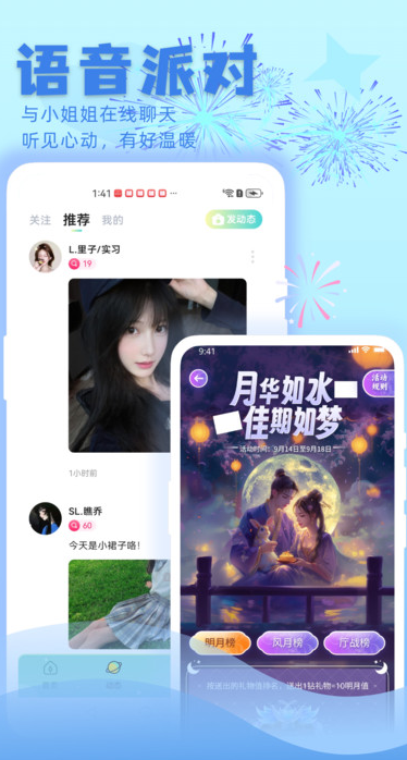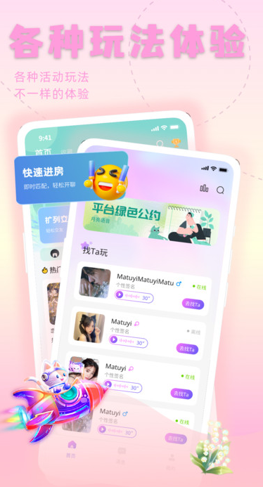 1、以声音为核心打造多元互动场景,让用户摆脱颜值焦虑,专注真实交流。